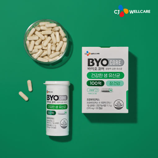CJ 바이오코어 생유산균은 이름 그대로 100억 CFU의 살아있는 유산균을 유통기한까지 보장하는 고함량 제품입니다. 유산균은 제조 과정에서 빛과 열에 약해 파괴되기 쉽지만, 이 제품은 이를 극복하고 생균이 장까지 도달하도록 설계된 트리플 코어 포뮬러를 적용했습니다.